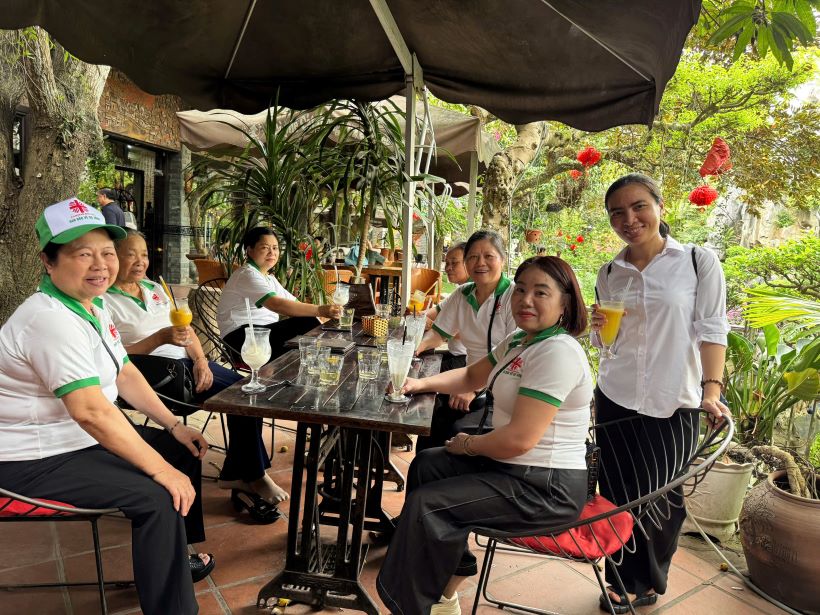Trước khi quay lại bệnh viện, đoàn dừng chân tại một quán nước nhỏ. Bên tách trà ấm hay ly nước mát, những kỷ niệm về thời truyền giáo, những khó khăn thuở ban sơ được các Ngài chia sẻ bằng chất giọng hiền từ. Chính sự quan tâm và lắng nghe của những người trẻ đã làm tươi mát tâm hồn các Ngài, tạo nên sự kết nối tuyệt vời giữa các thế hệ.