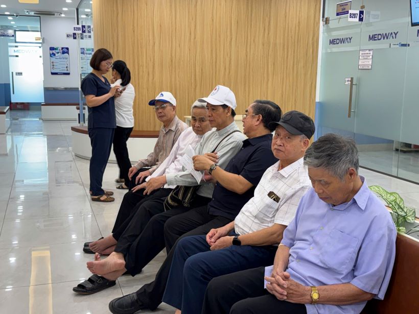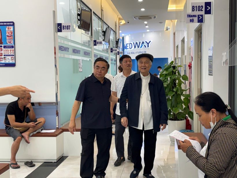 Rời quán nước, đoàn tiến về bệnh viện để nhận kết quả khám bệnh. Trong lúc chờ đợi, sự hiện diện đồng hành của quý Cha giám đốc Caritas, Cha giám đốc Nhà An dưỡng Bùi Chu cùng các thành viên Caritas là chỗ dựa tinh thần lớn lao. Khi cầm trên tay những kết quả khả quan, những nụ cười rạng rỡ hiện trên môi cả quý Cha lẫn những người đồng hành. Việc chăm sóc sức khỏe cho quý Cha là lời khẳng định rằng: Cộng đoàn luôn yêu thương và cần sự hiện diện, lời cầu nguyện của các Ngài như nguồn mạch thiêng liêng tuôn đổ xuống Giáo phận.