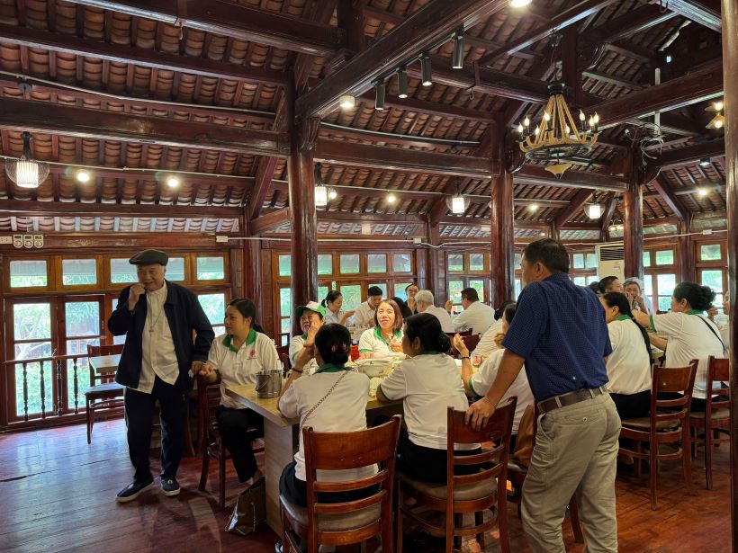 Đến giờ trưa, cả đoàn cùng quây quần bên bàn cơm ấm cúng. Bữa ăn không chỉ có những món ngon mà còn tràn ngập tiếng cười và những câu chuyện mục vụ năm xưa. Đây là lúc các Ngài được nghỉ ngơi thực thụ, tạm quên đi những mệt mỏi của tuổi già để tận hưởng tình thông hiệp giữa những người con cái trong gia đình Giáo hội.