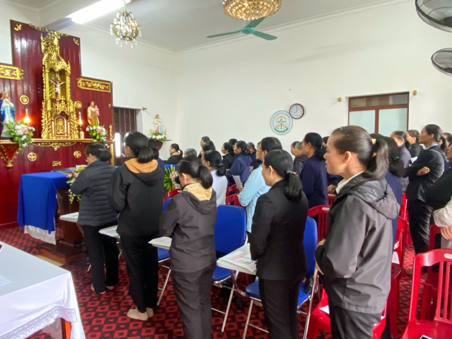 Vào lúc 5g00 sáng thứ Bảy ngày 17 tháng 01 năm 2026, trong bầu khí linh thánh và thinh lặng của tuần tĩnh tâm, Thánh lễ bế mạc đã được cử hành cách trang nghiêm và sốt sắng, như một dấu ấn hồng ân khép lại một tuần tĩnh tâm đầy ơn Chúa. Trong tâm tình tri ân sâu xa, quý chị em Hiệp Hội Mẹ Vô Nhiễm Bùi Chu cùng nhau quy tụ bên bàn tiệc Lời Chúa và Thánh Thể, dâng lên Thiên Chúa lời tạ ơn chân thành vì biết bao ân sủng Người đã thương ban cho Hiệp Hội và cho từng chị em. Đặc biệt, quý chị em cũng dâng lời cảm tạ Chúa vì suốt một tuần tĩnh tâm, thời tiết thật đẹp, thuận lợi cho việc cầu nguyện và chiêm niệm.