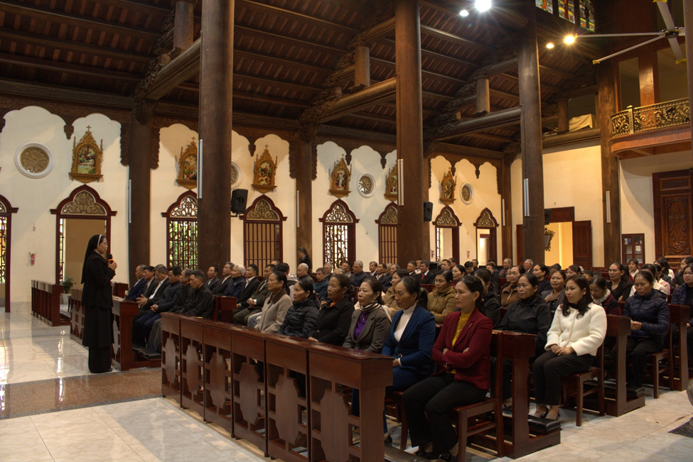 Vào lúc 8g30, Chị Tổng Phụ Trách đã có dịp gặp gỡ và chia sẻ cùng quý ông bà cố trong ngày họp mặt cuối năm. Sự hiện diện của quý ông bà cố và ân thân nhân đã mang lại cho Hội dòng bầu không khí thân thương, ấm áp tình gia đình. Ngày tổ chức họp mặt cuối năm của Hội Dòng năm nay thật ý nghĩa. Ý nghĩa trong bối cảnh cả Giáo Hội Việt Nam đang tiến tới việc đẩy mạnh truyền giáo khi mong muốn mỗi Kitô hữu là một môn đệ thừa sai, và Hội Dòng cũng chung nhịp bước như thế. Sau giây phút gặp gỡ, chị em đã cùng với quý ông bà cố và quý ân thân nhân có cuộc hành hương kính viếng Hài Cốt Đức cha Lambert de la Motte - Đấng Sáng Lập Dòng, tại Tòa Giám Mục Bùi Chu. Vào ngày 28/12/2022, Giáo phận Bùi Chu nói chung và cách riêng là Hội Dòng đã đón Hài Cốt của Ngài và đặt tại phòng Các Thánh Tử Đạo. Chúng ta cùng cầu xin cho tiến trình phong Thánh của Ngài sớm được diễn ra theo thánh ý Chúa.