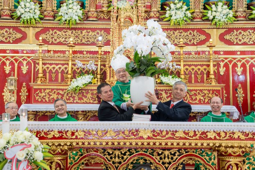Trước khi Thánh lễ khép lại, ông trùm chánh, thay lời cho cộng đoàn Giáo họ, đã dâng lời cảm tạ Thiên Chúa và tri ân sự hiện diện đầy tình thương của Đức cha Tôma, quý Cha, quý Thầy, quý Dì, quý ân thân nhân xa gần, trong ngày trọng đại này của Giáo họ. Ông cũng không quên cám ơn tấm lòng quảng đại của quý vị ân thân đã giúp đỡ Giáo họ về cả tinh thần và vật chất, để những công việc của Giáo họ được hoàn thành cách suôn sẻ và tốt đẹp.
