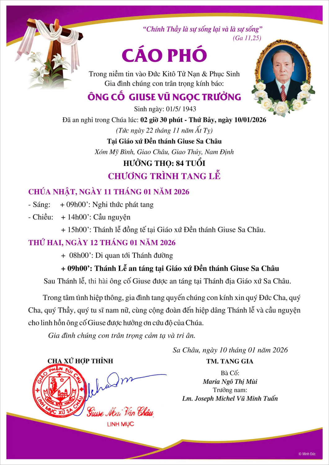 Cáo phó Bà cố Maria Ngô Thị Mùi