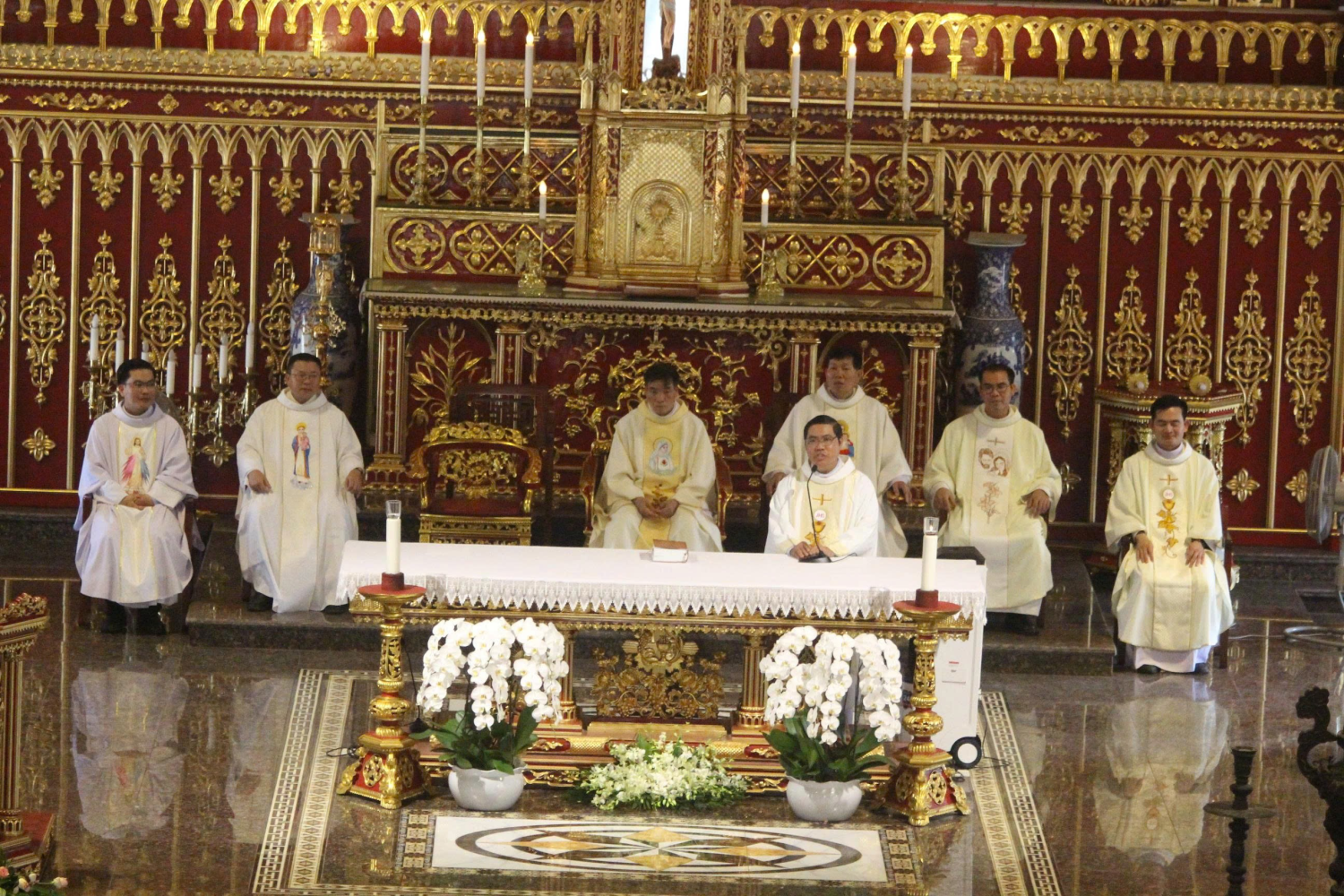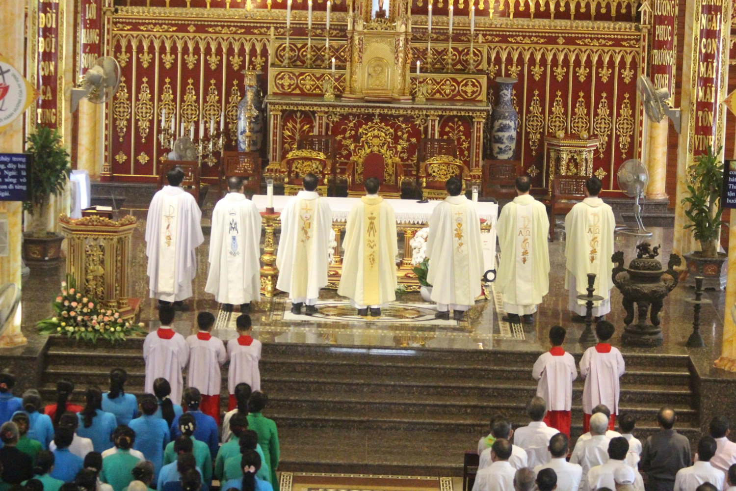 Đỉnh cao của ngày hành hương là Thánh lễ tạ ơn, được cử hành vào lúc 10h, do cha Giuse Nguyễn Văn Toanh - Quản hạt Tứ Trùng chủ tế và giảng lễ, cùng đồng tế có quý cha trong Giáo hạt. Mở đầu Thánh lễ, cha chủ tế hướng ý cộng đoàn phụng vụ cùng đi với Chúa và cùng đi với nhau, sống và lan tỏa các giá trị Tin Mừng giữa lòng thế giới.
