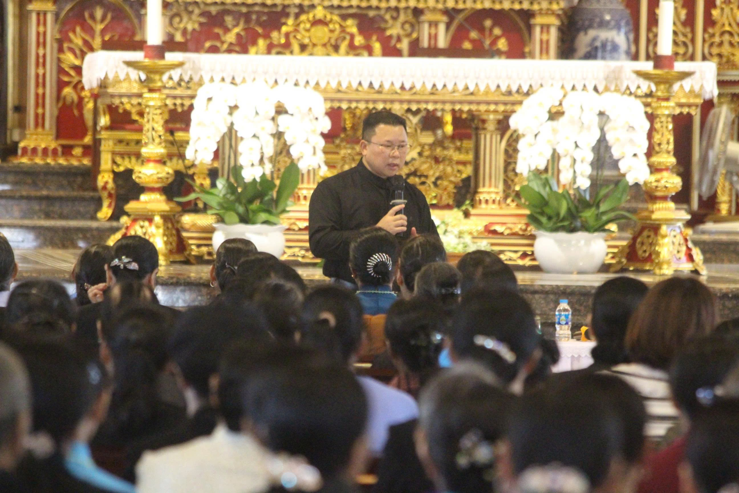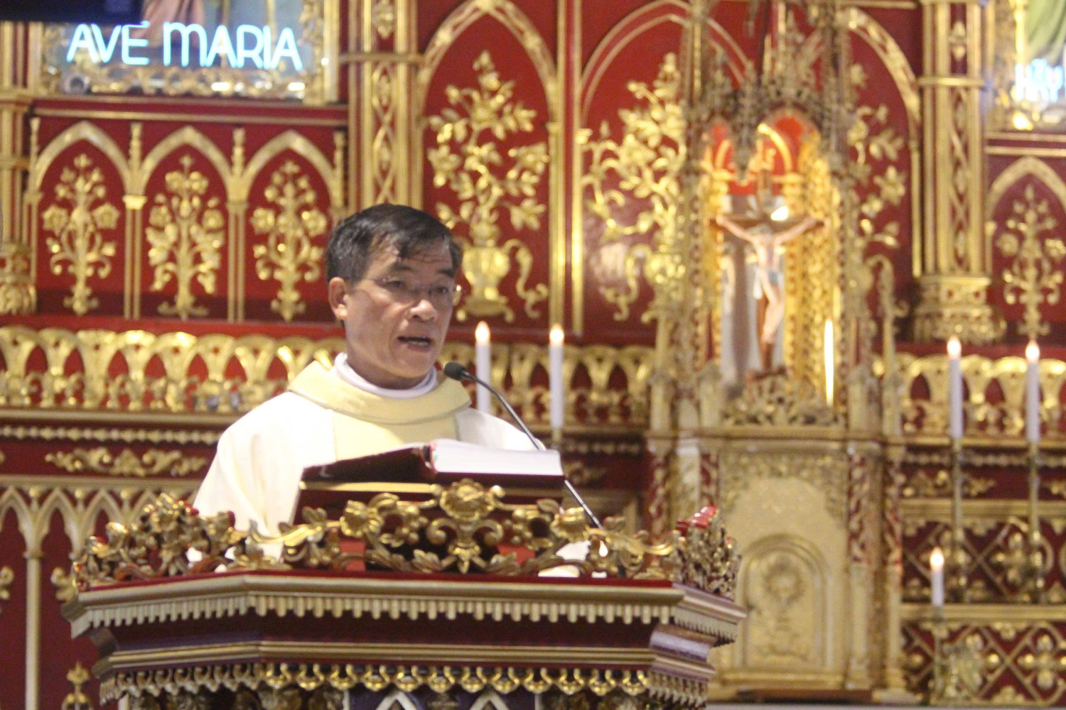 Trong phần chia sẻ Lời Chúa, Cha quản hạt Giuse mời gọi cộng đoàn noi gương Thánh Têrêsa Calcutta, luôn biết nhìn thấy hình ảnh của Chúa nơi những người nghèo khó và phục vụ họ bằng cả trái tim khiêm nhường, yêu thương.