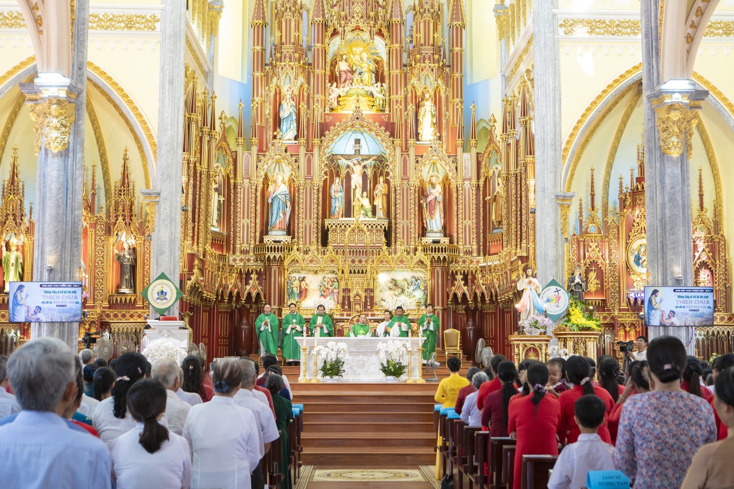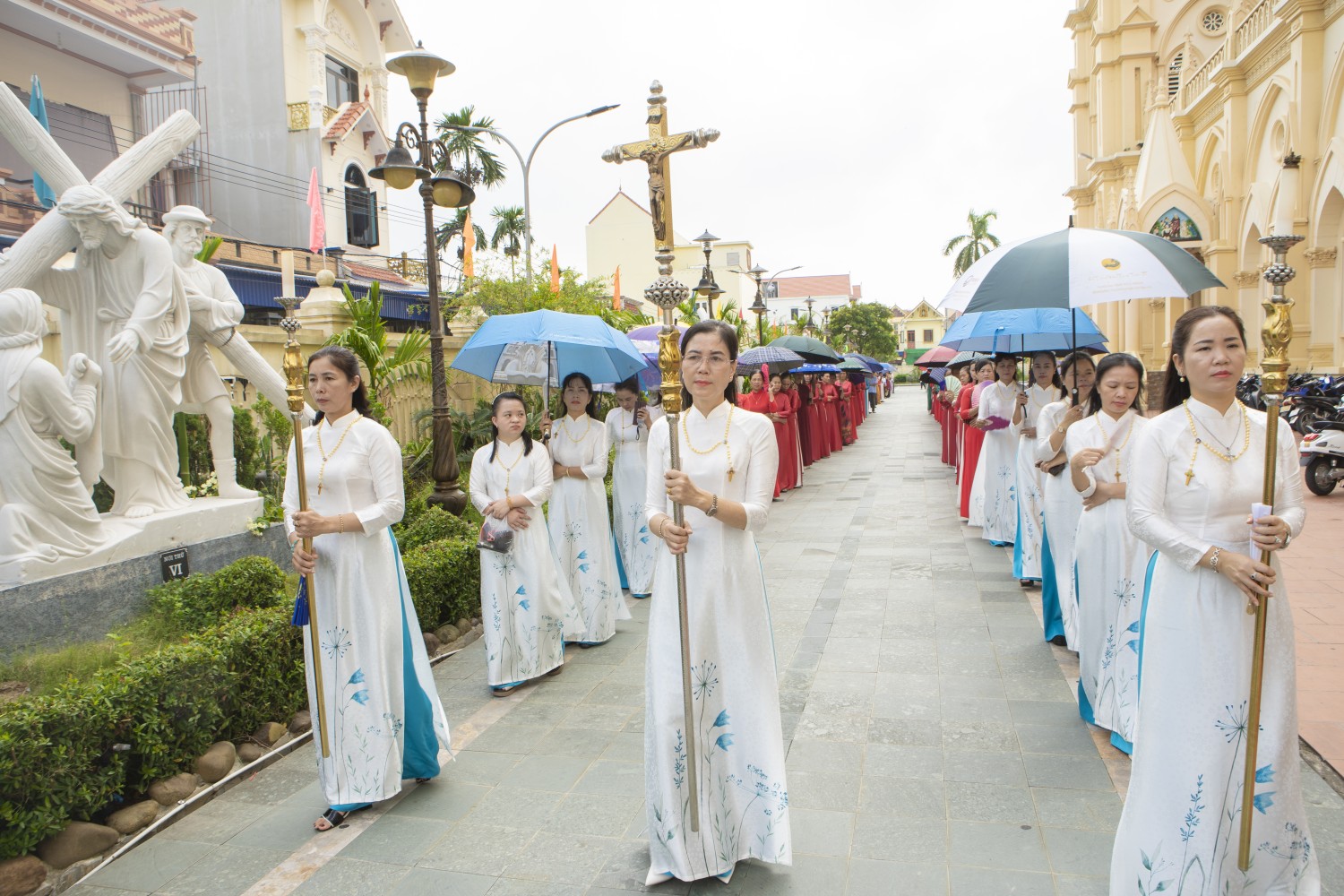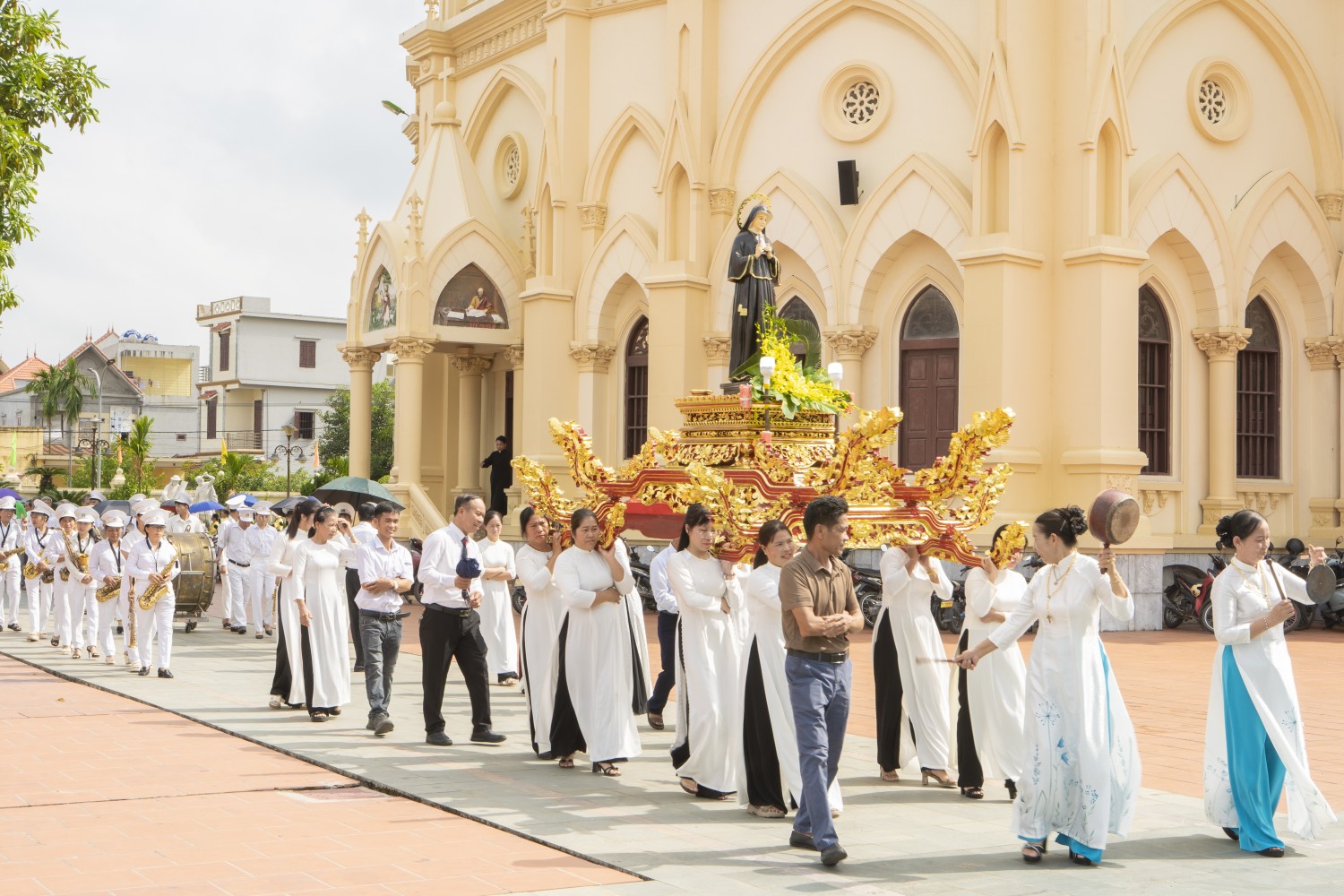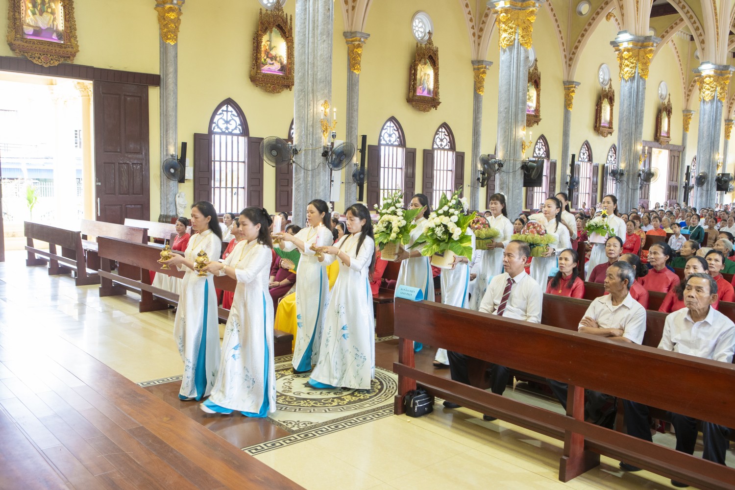 Vào lúc 9g30, cộng đoàn cung nghinh kiệu Thánh nữ Faustina và Lòng Chúa Thương Xót trong bầu khí trang nghiêm và sốt mến. Ngay sau cuộc rước kiệu là Thánh lễ trọng thể do Cha Quản hạt Đaminh chủ tế. Đồng tế với ngài có quý Cha đặc trách Lòng Chúa thương xót Giáo phận, Giáo hạt, quý Cha trong Giáo hạt, cùng sự hiện diện của quý Tu sĩ nam nữ, quý Ban hành giáo các Giáo xứ, toàn thể hội viên và cộng đoàn dân Chúa.
