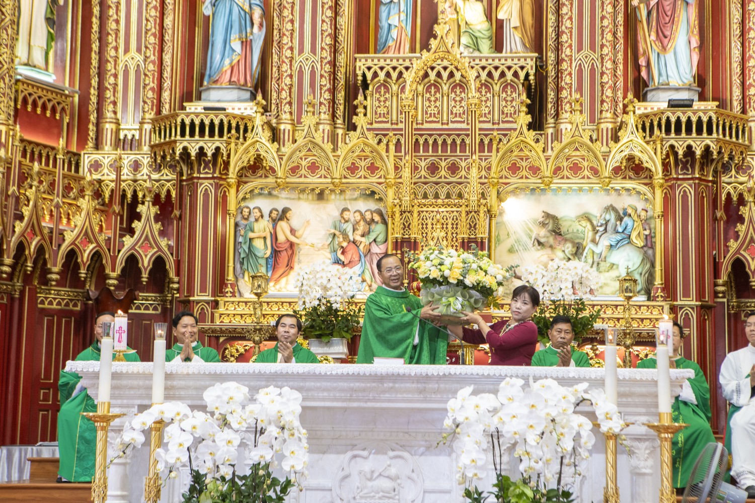 Sau Thánh lễ, bà trưởng Hội Lòng Chúa Thương Xót Giáo hạt Tương Nam đã đại diện hội dâng lời cảm ơn quý Cha, quý Tu sĩ, quý khách và toàn thể cộng đoàn hiện diện. Trong tâm tình tri ân, vị đại diện hội kính tặng lẵng hoa tươi thắm lên Cha chủ tế như một dấu chỉ lòng biết ơn chân thành.