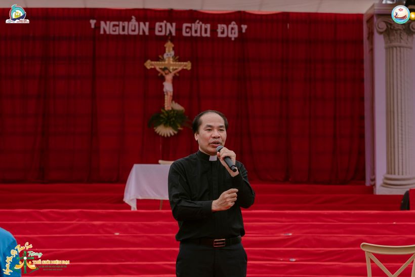 Lúc 8h15, trong bầu khí chia sẻ gần gũi, thân tình, Cha Giuse Nguyễn Văn Quang, Phó Giám đốc Đại Chủng Viện Bùi Chu, đã giúp các bạn trẻ ý thức về một cơn cám dỗ rất phổ biến và vô cùng hấp dẫn ngày nay, đó là chiếc điện thoại. Khởi đi từ sự “gắn bó không rời” của các bạn trẻ với chiếc điện thoại, Cha Giuse mời gọi mỗi người nhận ra sự lệ thuộc, mất tự do của mình, khi dành phần lớn thời gian trên không gian ảo, nơi mà ranh giới giữa tốt và xấu, được làm và không được làm, trở nên hết sức mờ nhạt. Trong tình trạng đó, con người dễ bị sống ảo, định nghĩa giá trị bản thân và người khác bằng những thứ hời hợt, phù phiếm. Ngoài ra, lạm dụng điện thoại cũng khiến con người bị nghiện những sự thỏa mãn tức thời, những giải pháp “mì ăn liền”, để rồi đánh mất khả năng tập trung và tư duy sâu sắc trước những vấn đề lớn và hệ trọng. Không những thế, không ít người bị sa vào hố sâu của những nội dung độc hại tràn lan trên Internet. Từ đó, Cha Giuse khích lệ các bạn trẻ can đảm lội ngược dòng, dám ngắt kết nối khi không thực sự cần thiết, để có thể sống một cuộc sống thực tự do và trọn vẹn ý nghĩa. Trong suốt thời gian chia sẻ và sinh hoạt, nhiều bạn trẻ đã tìm đến với Bí tích Hòa Giải, để cảm nghiệm cách sâu xa tình yêu và lòng thương xót của Chúa trên cuộc đời mình.