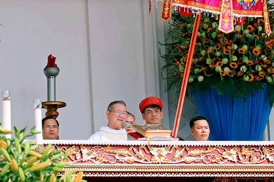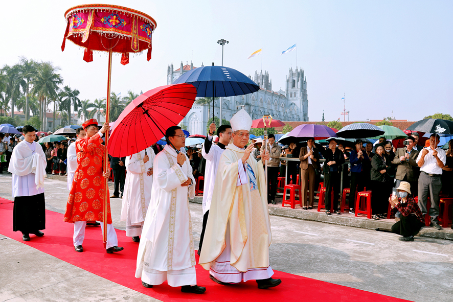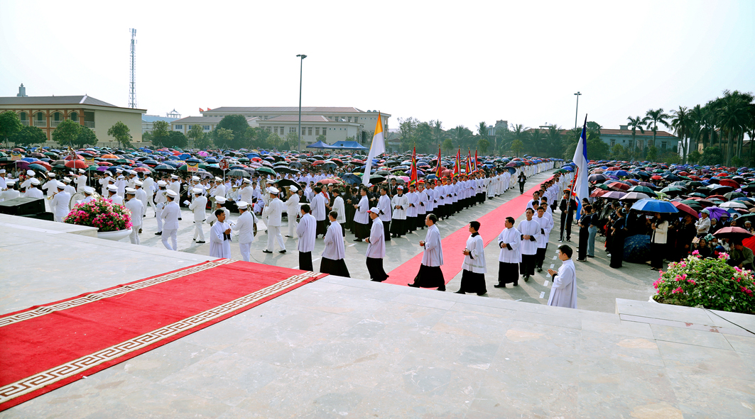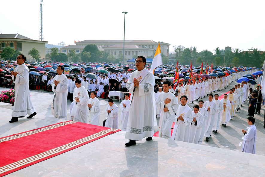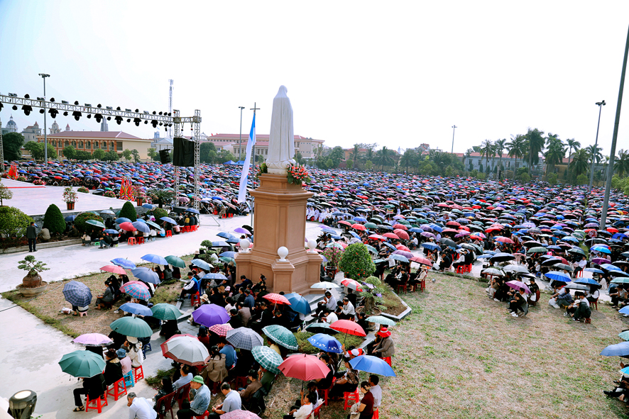 Quy tụ về bên Mẹ trong đại lễ năm nay, có Đức Cha Tôma Vũ Đình Hiệu, vị chủ chăn của Giáo Phận, và đông đảo mọi thành phần dân Chúa trong Giáo Phận: quý Cha, quý Phó tế, quý Tu sĩ, quý Chủng sinh, và bà con giáo dân. Đây là một hình ảnh thật đẹp, diễn tả cách sống động sự hiệp nhất, yêu thương trong cùng một gia đình đức tin, bên người mẹ hiền từ là Đức Maria.
