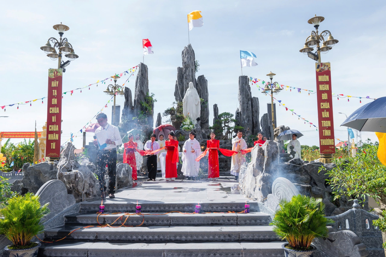 Sáng nay, thứ Tư ngày 01/10/2025, giáo họ đã long trọng tổ chức cắt băng khánh thành núi Chúa và Đức Mẹ, dâng thánh lễ tạ ơn và mừng thánh Têrêsa Hài Đồng Giêsu, bổn mạng lúc 09g40. Thánh lễ diễn ra thật long trọng, sốt sắng.