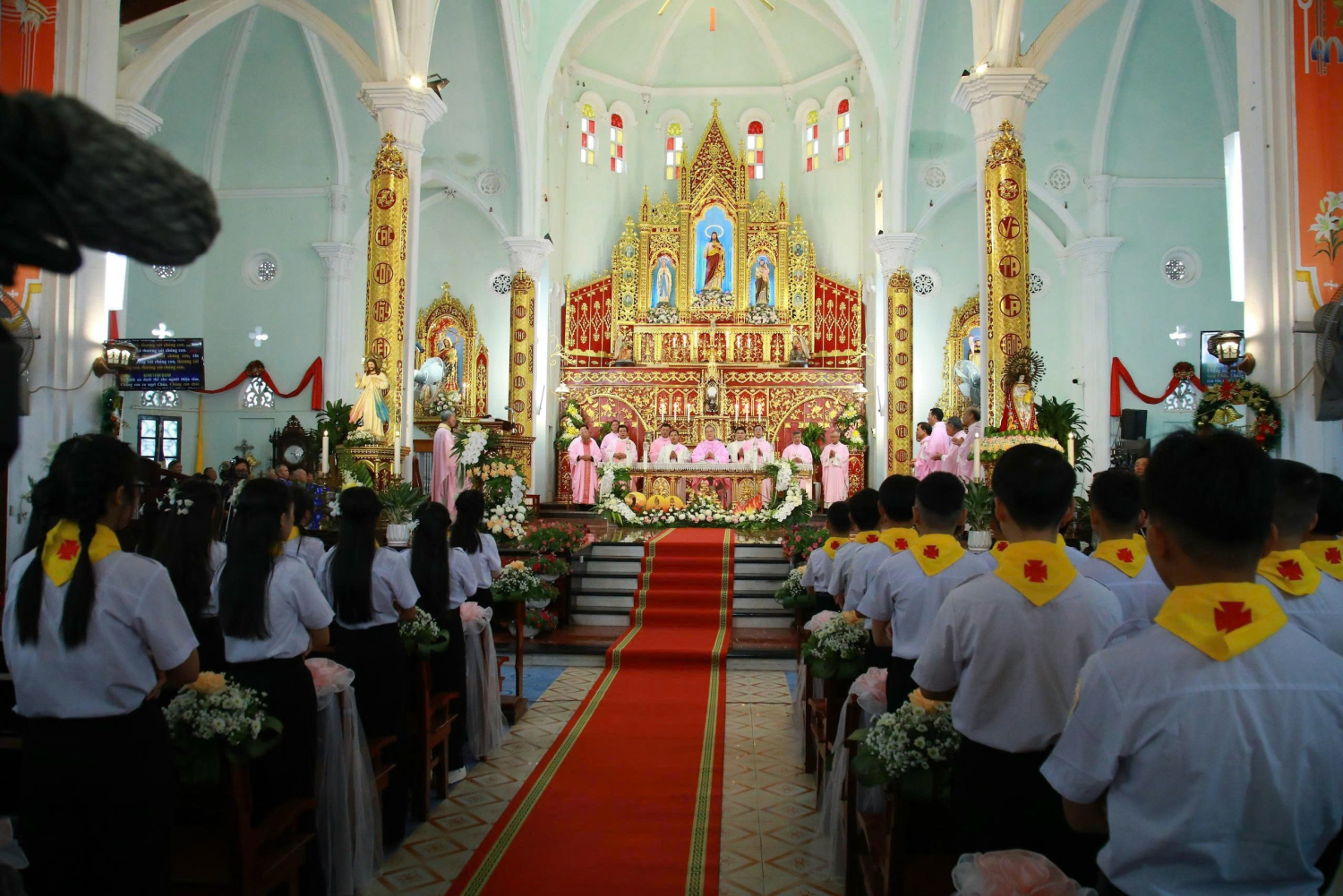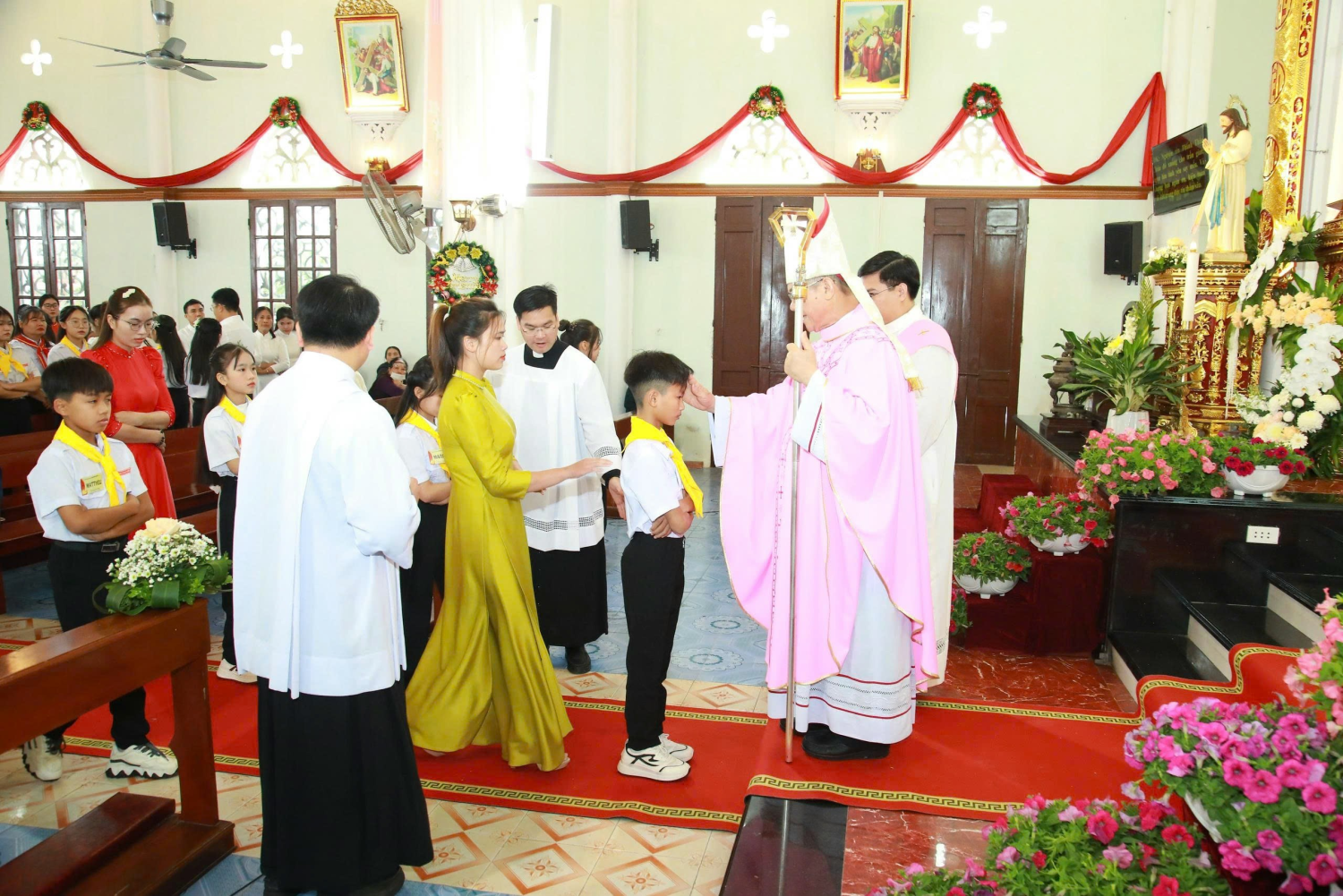Sau phần chia sẻ Lời Chúa, Đức Cha đã lần lượt ghi dấu ấn Thánh Thần trên 90 em được lãnh nhận bí tích Thêm Sức. Niềm vui của các em được lan tỏa sang những người đỡ đầu cùng toàn thể quý cộng đoàn trong ngày hồng phúc này.