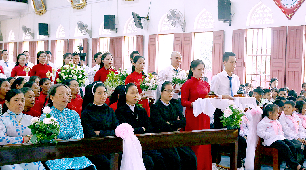 Mở đầu Thánh lễ, Cha chủ tế Giuse bày tỏ niềm vui với cộng đoàn vì giáo xứ đã chính thức được đón nhận sắc phong. Ngài nhấn mạnh ý nghĩa đặc biệt của Chúa nhật I Mùa Vọng – khởi đầu năm Phụng Vụ – là thời điểm thuận tiện để mỗi người chuẩn bị tâm hồn, mở lòng đón Chúa đến, bởi “ơn cứu độ của Chúa đã gần đến". Cha cũng cầu nguyện cho các đấng bậc đã coi sóc giáo xứ, các bậc tiền nhân và ân nhân đã góp phần xây dựng và nuôi dưỡng đời sống đức tin nơi giáo xứ.