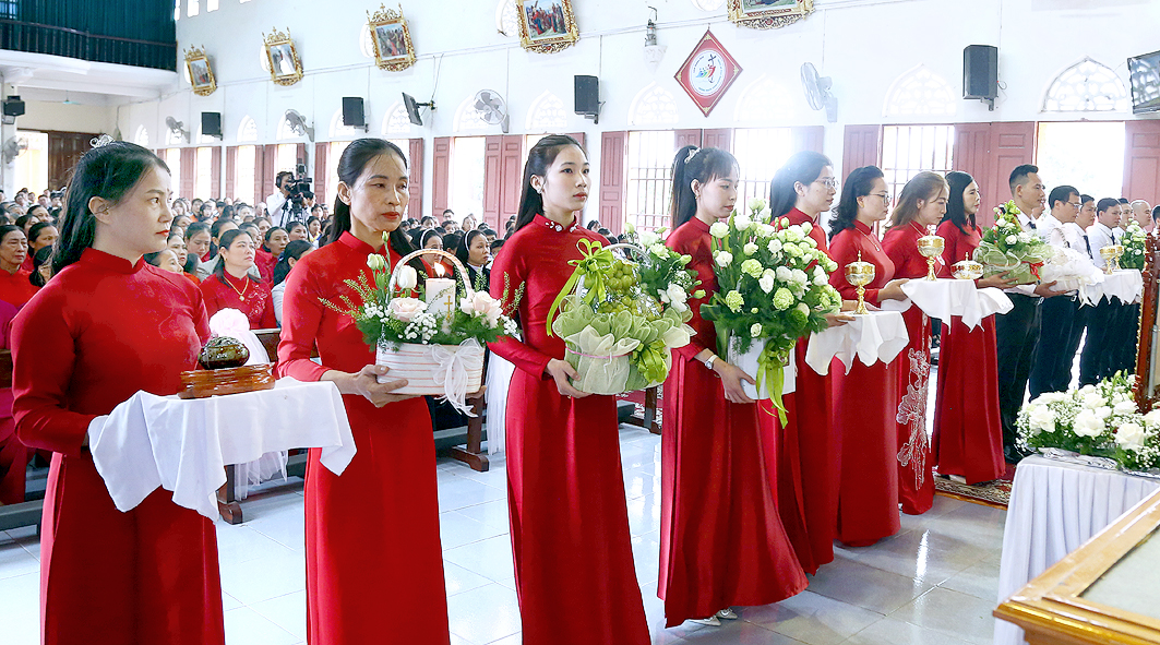 Thánh lễ tạ ơn do Cha quản hạt Giuse Nguyễn Văn Chuyển chủ sự. Đồng tế với ngài có quý cha trong và ngoài giáo hạt. Hiệp dâng Thánh lễ còn có sự hiện diện của quý thầy, quý dì, quý khách và đông đảo bà con giáo dân trong giáo xứ.