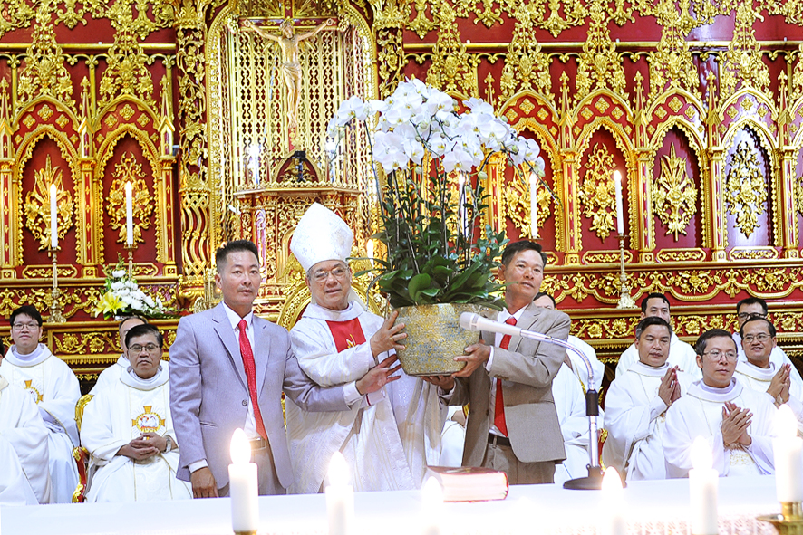 Sau khi Cha xứ đệ trình lên Đức Cha đôi nét khái quát về công trình, Đức Cha Tôma đã chủ sự nghi thức làm phép và cắt băng khánh thành ngôi thánh đường, công trình được xây dựng nên bằng biết bao mồ hôi, công sức và tấm lòng quảng đại của con dân trong cũng như ngoài giáo họ.