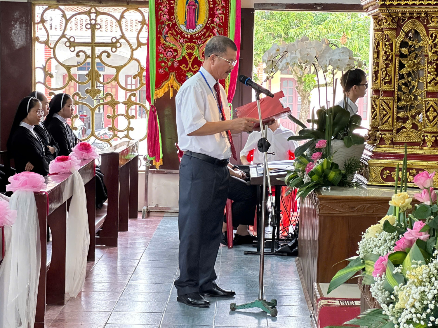 Trước khi kết thúc Thánh lễ, một vị đại diện, đã thay lời cho cộng đoàn Giáo xứ, nói lên tâm tình cảm tạ Thiên Chúa và tri ân sự hiện diện đầy tình thương của quý Cha, quý Thầy, quý Dì, quý khách xa gần.