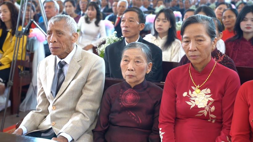 Một trong những giây phút cảm động nhất trong Thánh lễ tạ ơn là khoảnh khắc cha mới Giuse tiến tới trao cho ông bà cố những đóa hoa tươi thắm. Mặc dù ơn gọi linh mục luôn khởi đi từ sáng kiến hoàn toàn tự do và nhưng không của Thiên Chúa, nhưng ơn gọi này cũng cần phải được nuôi dưỡng bằng lời cầu nguyện, hy sinh và sự nâng đỡ của biết bao người, nhất là của ông bà cố. Đặc biệt, với gia đình cha mới Giuse, khi có đến 3 Linh mục và một Dì thuộc Tu hội đời Thánh Tâm, chắc chắn ông bà cố càng phải hy sinh nhiều hơn nữa, mà như lời của cha mới “riêng việc sinh chúng con ra, bố mẹ đã phải nộp phạt cả tấn thóc, chưa cần kể đến công lao trời bể dưỡng dục”. Sự hy sinh lớn lao đó đã được Thiên Chúa chúc phúc, và lại một lần nữa được nở hoa thánh thiện là người con mà ông bà cố dâng cho Thiên Chúa và Giáo Hội.