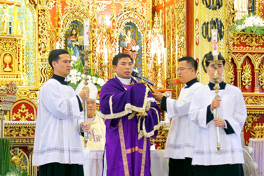 Mở đầu Thánh lễ, Đức cha Tôma mời gọi cộng đoàn dâng lời cảm tạ Thiên Chúa vì muôn vàn hồng ân cao cả Ngài đã thương ban cho Giáo phận và cho mỗi người, bằng cách luôn sống xứng đáng là người Kitô hữu, sống trong bình an, hiệp nhất, yêu thương. Ngài cũng nêu lên ý nghĩa chính yếu của đại lễ hôm nay, là cho thấy các Bí tích cũng như chức linh mục thừa tác đều bắt nguồn từ mầu nhiệm Vượt qua của Đức Kitô. Đức cha cũng nhắn nhủ mọi người không quên cầu nguyện cho các nhu cầu và sinh hoạt của Giáo phận, cầu nguyện cho quý đấng bậc, quý ân thân nhân của Giáo phận đã qua đời.