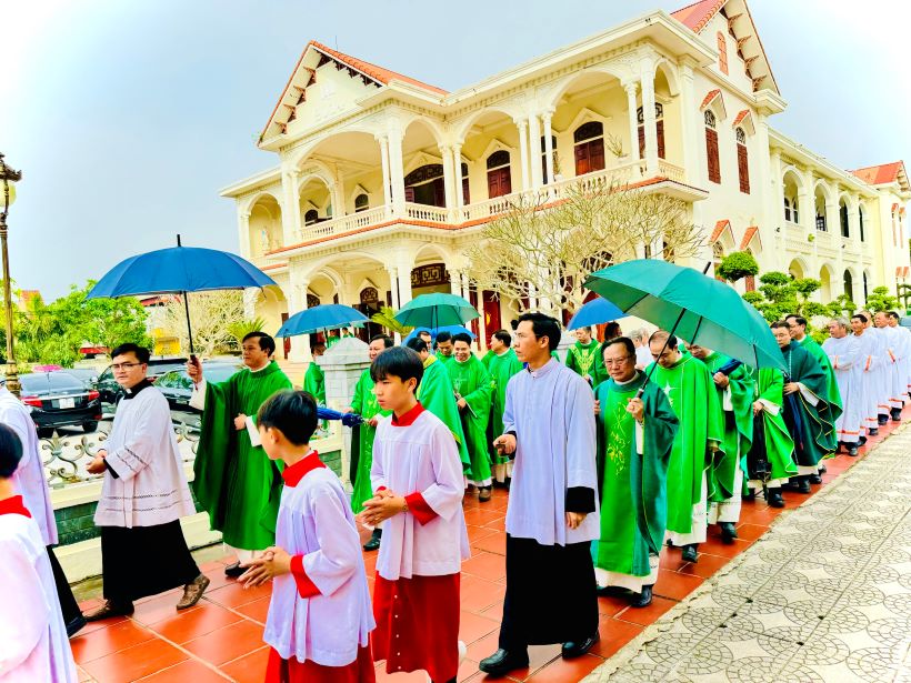Hiện diện để chia sẻ niềm vui thánh thiêng này với Giáo xứ, và hiệp dâng Thánh lễ tạ ơn, cầu nguyện cho Giáo xứ, có Cha chủ tế Giuse Nguyễn Văn Toanh, Quản hạt Tứ Trùng, khoảng 40 Cha đồng tế, quý Thầy, quý Dì và đông đảo bà con Giáo dân trong và ngoài Giáo xứ.
