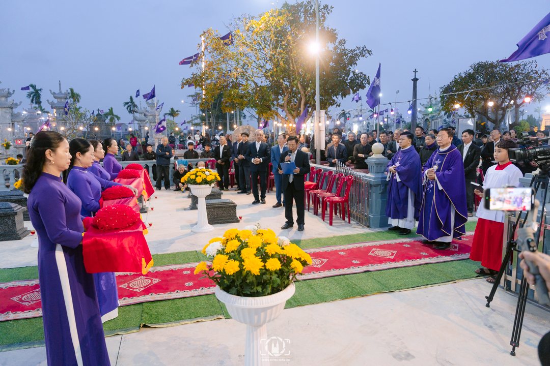 Trước khi bước vào Thánh lễ, Cha xứ Antôn Đinh Mạnh Hùng, Cha phó Gioan Baotixita Trần Văn Tiệp, ông trưởng hội Vinhsơn, các thành viên trong Hội Ất Dậu và đông đảo cộng đoàn, đã tham dự nghi thức làm phép và cắt băng khánh thành khu lăng mộ của các phần mộ "mồ côi", không được ai chăm sóc.