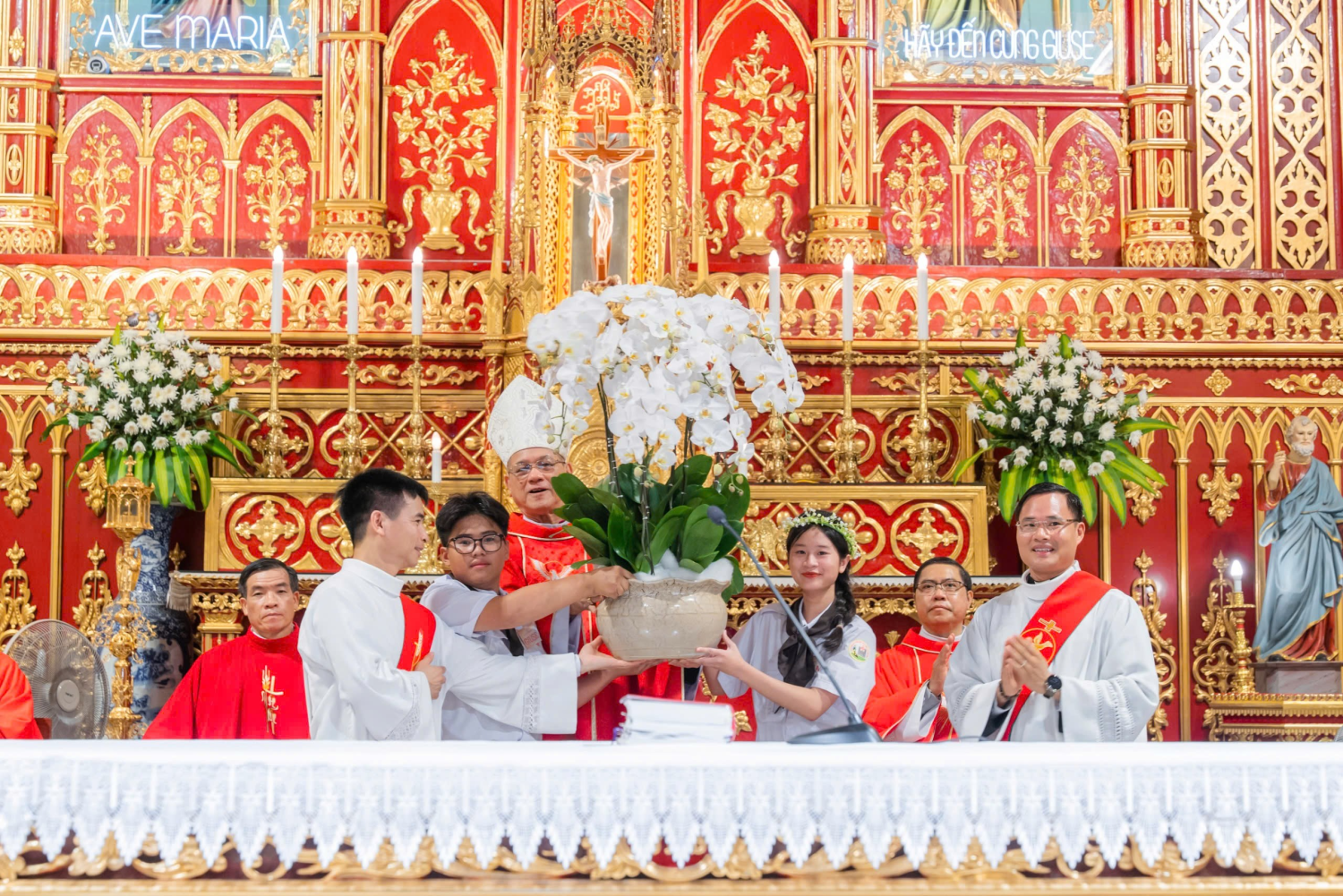 Sau khi Đức Cha kết thúc nghi thức ban Bí tích Thêm Sức, Thánh lễ được tiếp tục với phần Phụng vụ Thánh Thể thật trang nghiêm và sốt sắng.