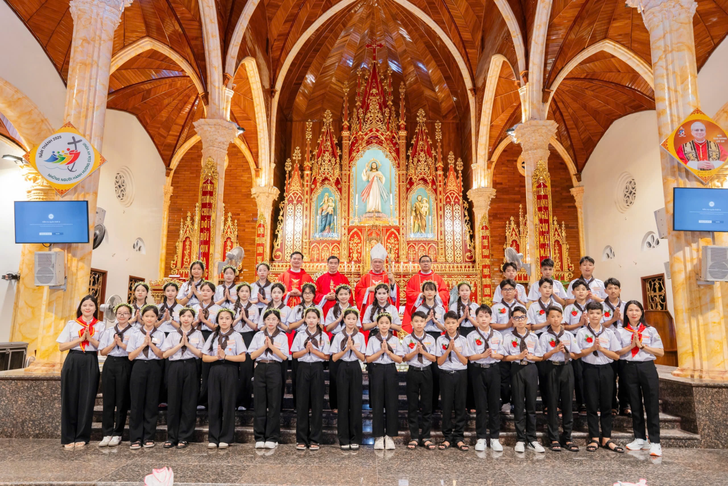 Chiều tối thứ Bảy, ngày 04/10/2025, tại ngôi Thánh đường thân thương của Giáo xứ Xuân Thủy, đã ghi một dấu mốc thật đặc biệt trên hành trình đức tin của 70 em thiếu nhi gồm 69 em của Giáo xứ Xuân Thủy và 1 em thuộc Giáo xứ An Bài. Bởi lẽ, với việc được lãnh nhận Bí tích Thêm Sức hôm nay, các em đã hoàn tất tiến trình khai tâm Kitô giáo, để bước sang một giai đoạn mới. Từ đây, các em sẽ sống đức tin trong tâm thế của một tín hữu trưởng thành, không còn giữ đức tin một cách thụ động, cho riêng mình, nhưng được mời gọi, như các Tông đồ trong ngày lễ Ngũ Tuần xưa, dám can đảm bước ra với thế giới, để làm chứng, và tỏa lan các giá trị Tin Mừng cho muôn người.