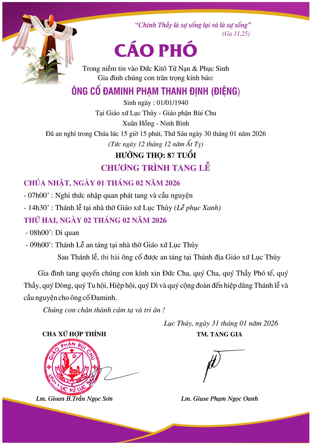 Cáo phó thân phụ cha Đaminh Mai Văn Đảm