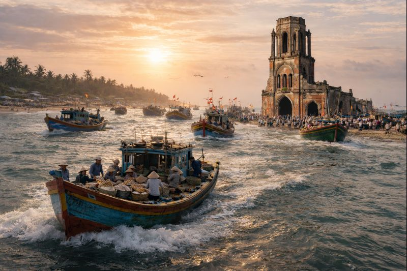 Nhìn những lớp vàng lặng lẽ trong ngôi thánh đường, tôi không thấy sự phô trương. Tôi thấy bóng dáng của những con người rám nắng, đôi bàn tay còn mùi muối biển, lặng lẽ cúi đầu cầu nguyện sau mỗi chuyến khơi xa. Tôi thấy niềm tin được gửi gắm qua từng lễ vật nhỏ, từng đồng tiền chắt chiu từ mồ hôi, nước mắt và sóng gió. Đó là thứ “vàng” không dễ gì đo đếm, nhưng lại là thứ vàng có giá trị bền lâu nhất.