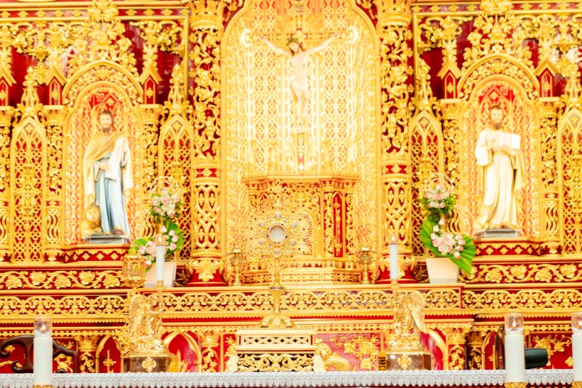 Trong bối cảnh ấy, những lớp thiếp vàng trong nhà thờ không còn mang dáng dấp của sự xa hoa. Đó là kết tinh của vô số lễ vật nhỏ bé, được dâng lên bằng lòng biết ơn và niềm tin. Giáo dân Xương Điền không dư thừa, nhưng họ vẫn chọn dâng, dâng từ chính cái ít ỏi của mình, với một xác tín rất rõ ràng: điều tốt đẹp nhất thì dành cho Thiên Chúa.